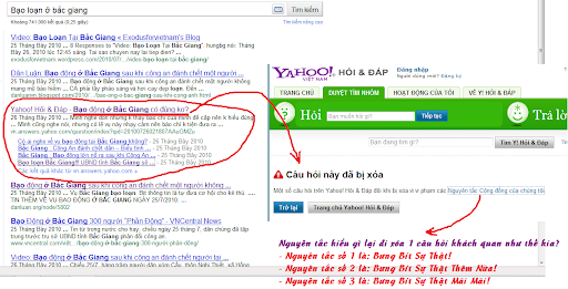 Không thì cứ vô Google gõ "Biểu tình ở Bắc Giang" hoặc "Bạo loạn ở Bắc Giang" để tìm. Cạch mặt thằng Yahoo ra nhé!